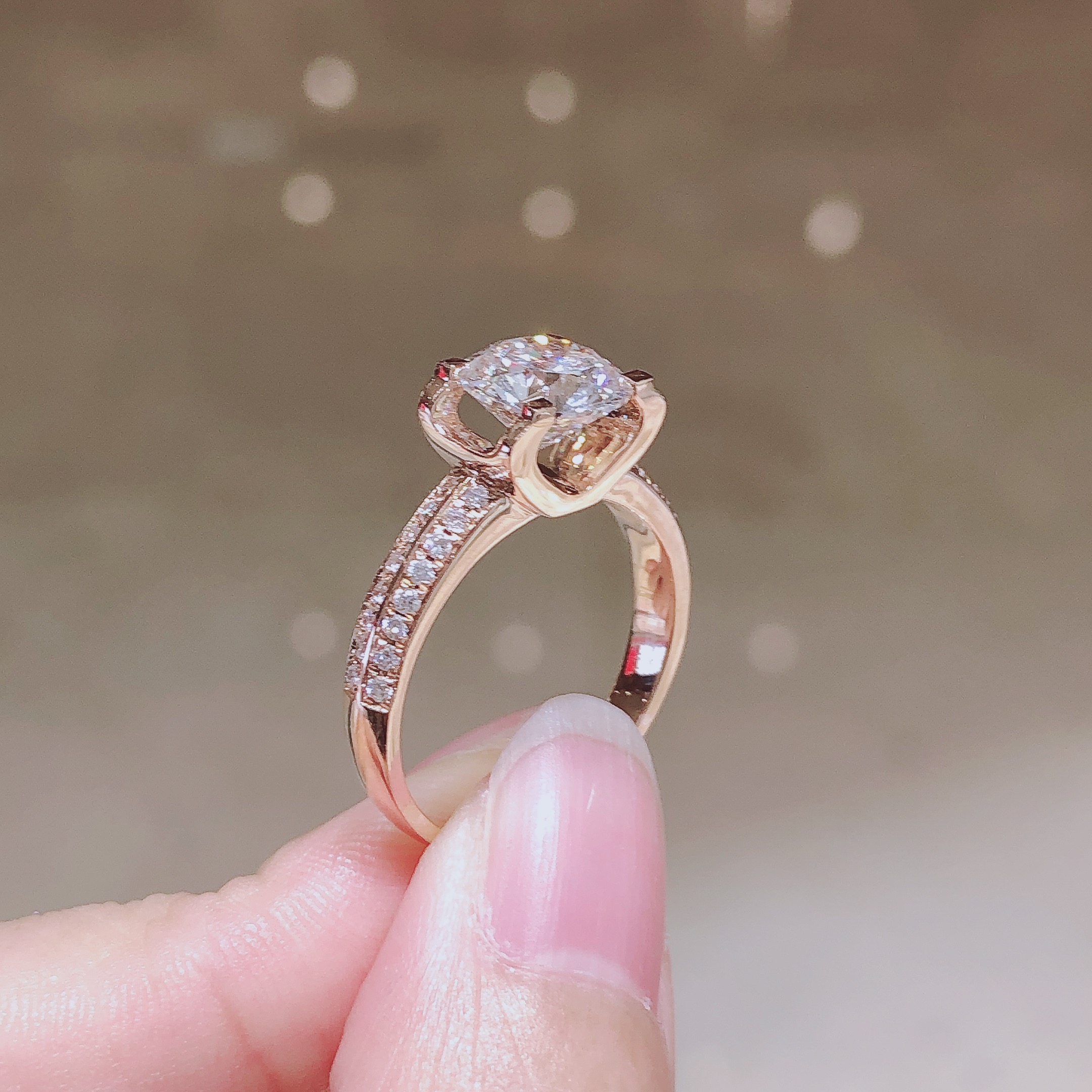 1ct Round Lab Diamond 18K红 Ring